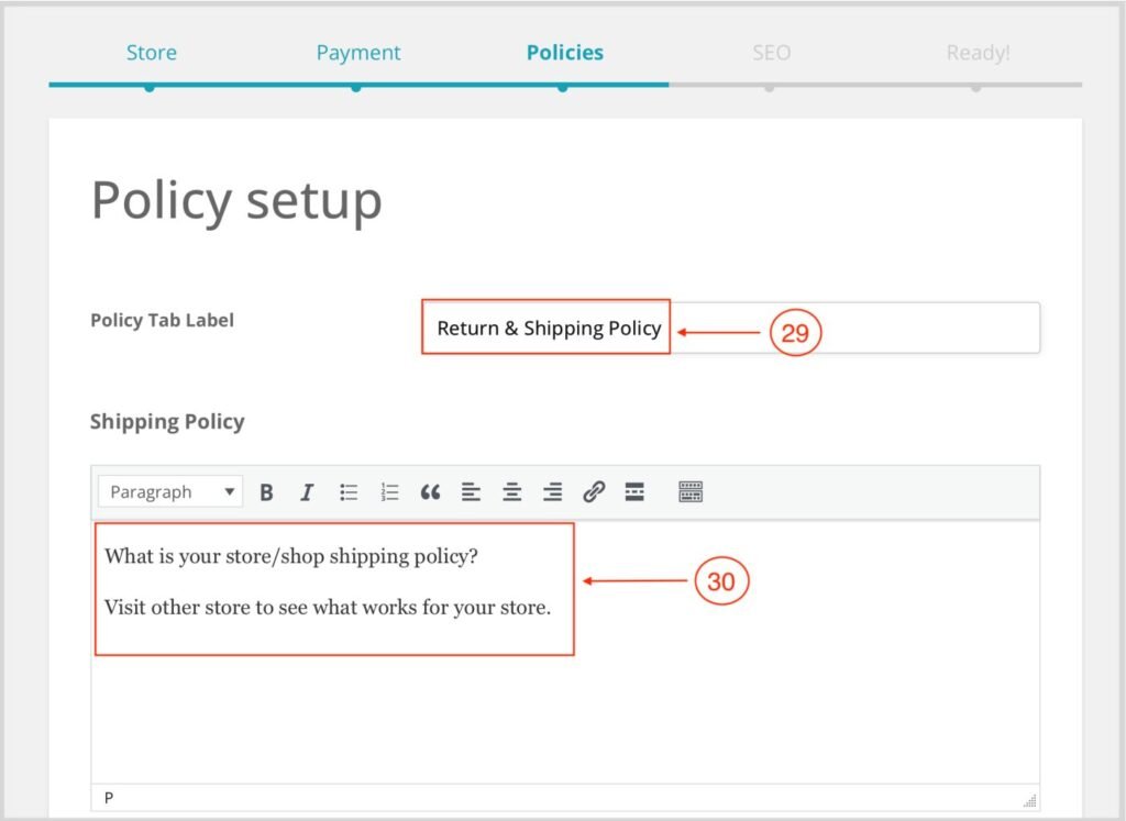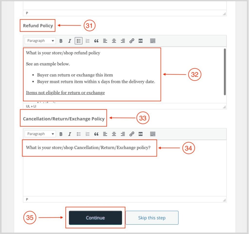 2. Enter your store/shop refund policy.